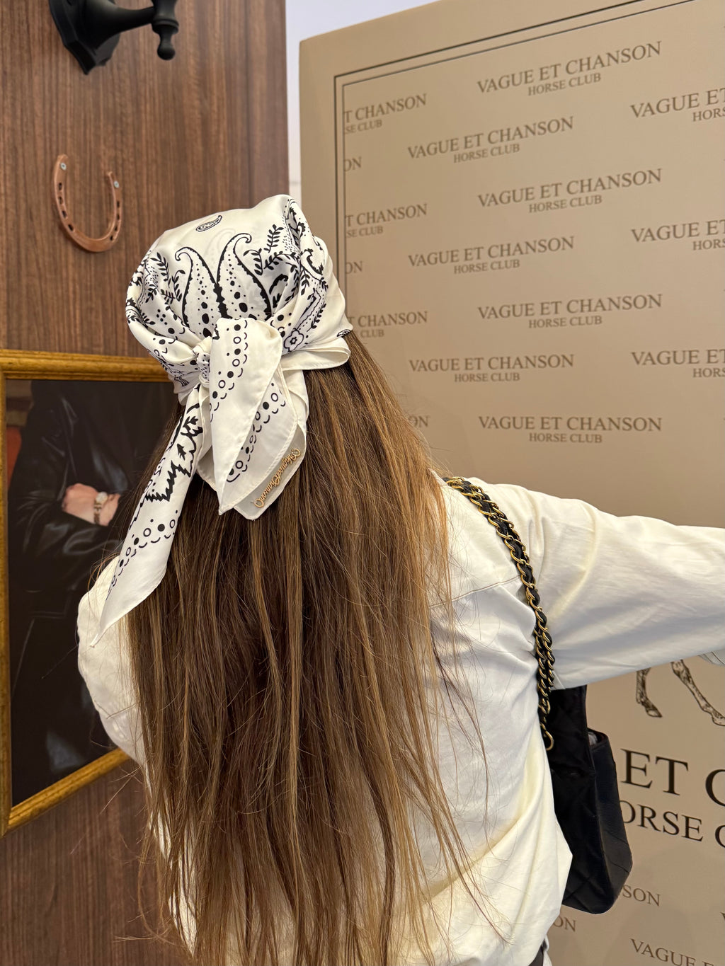 Vague paisley golden logo bandana- white